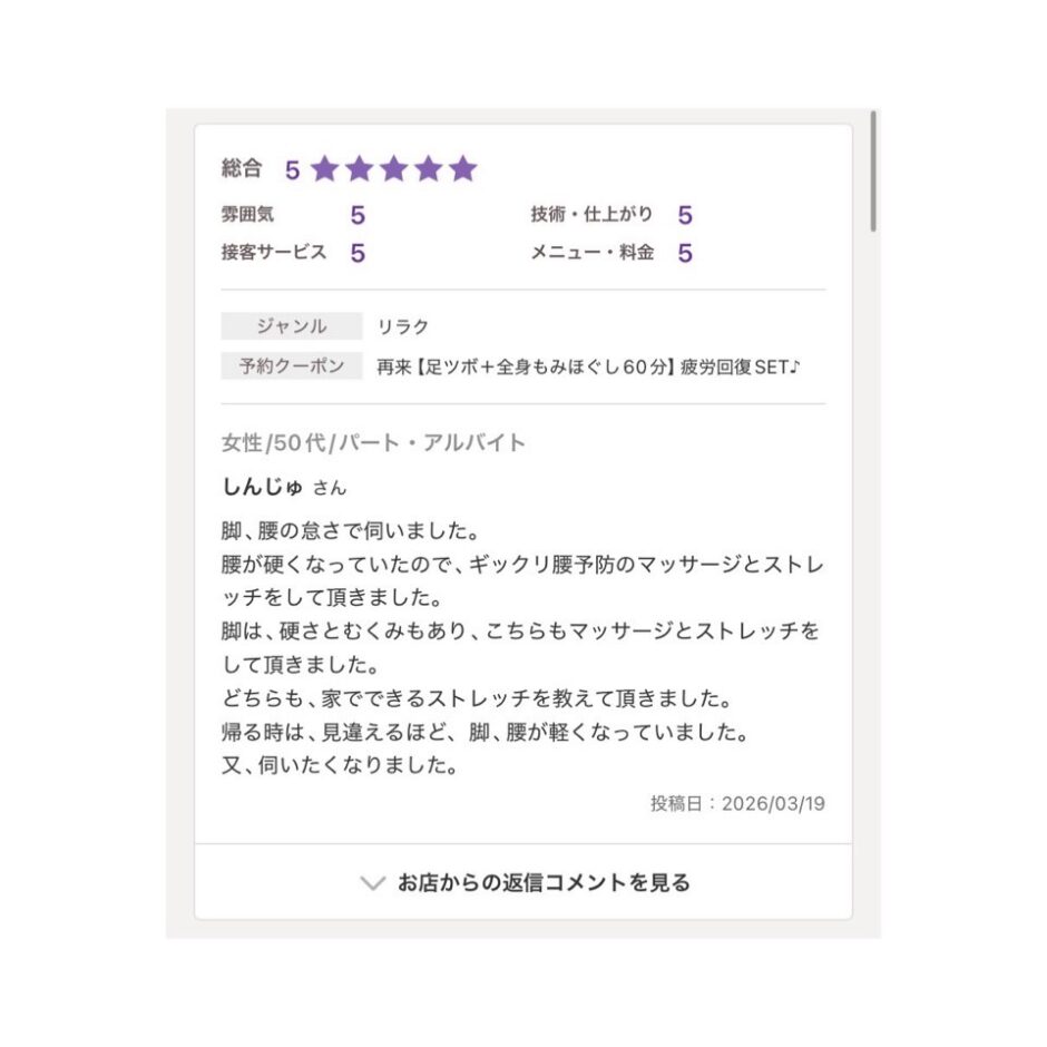 「脚と腰のだるさ」でご来院された50代女性の症例をご紹介します。