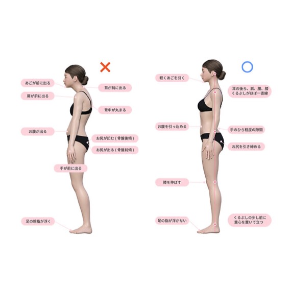 右側が「理想的な立ち姿勢」です。